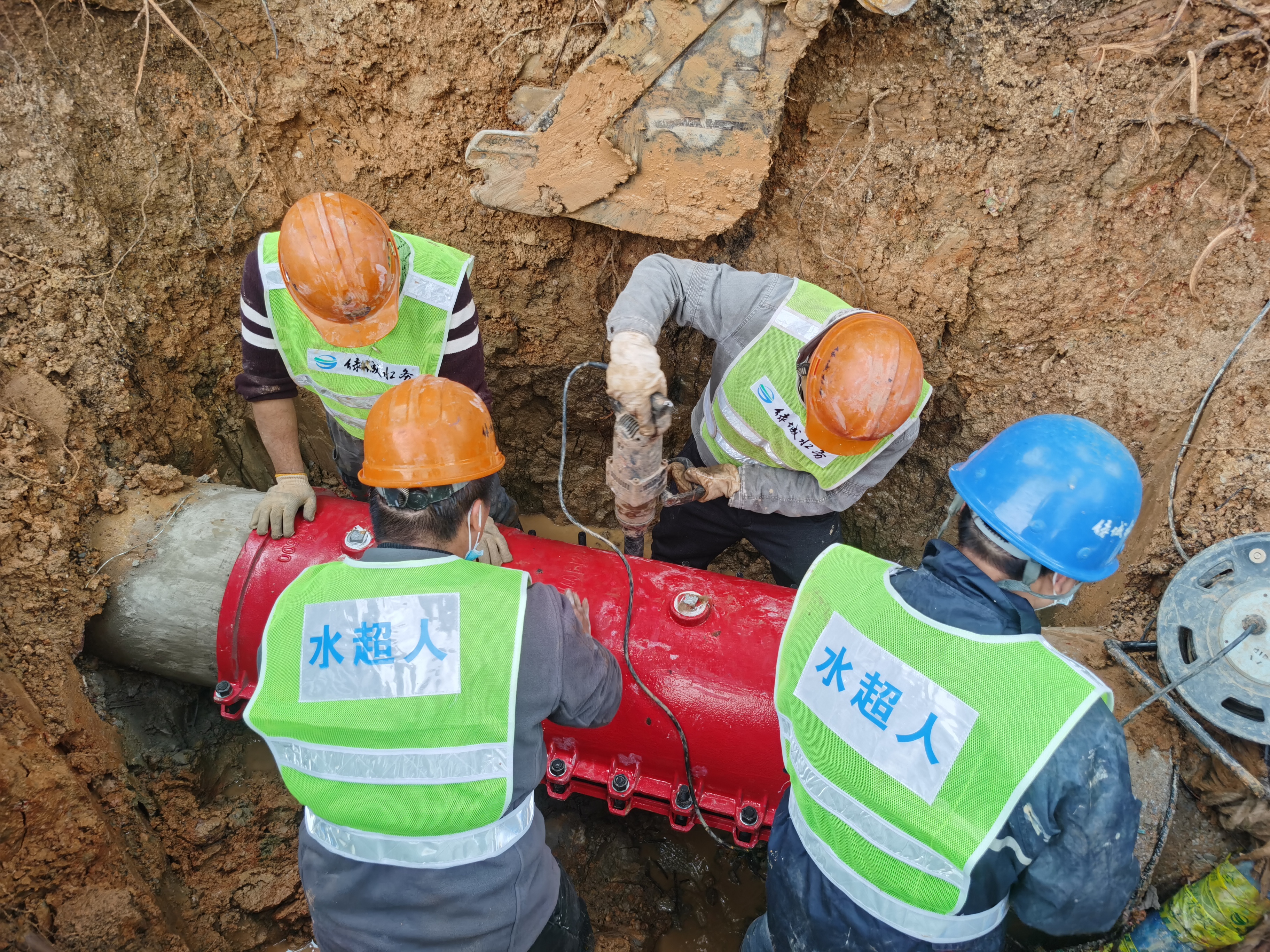 管網(wǎng)管理處“水超人”黨員先鋒示范服務(wù)隊晝夜不間斷搶修水管,為市民安全用水保駕護(hù)航。徐振峰 攝