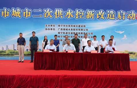5月21日上午,南寧市城市二次供水控新改造啟動儀式在南寧市青秀區(qū)高坡嶺路36號軌道御瓏壹號城舉行,廣西綠城水務(wù)股份有限公司(以下簡稱綠城水務(wù))和南寧市大沙田供水有限責(zé)任公司分別與南寧軌道地產(chǎn)集團有限責(zé)任公司、廣西吉麗嘉益投資有限公司簽訂二次供水及一戶一表協(xié)議,標(biāo)志著南寧市城市二次供水控新改造項目正式啟動,城市二次供水建設(shè)管理將迎來專業(yè)化、規(guī)范化、標(biāo)準(zhǔn)化管理的新時代,城市供水“最后一公里”水質(zhì)安全將更有保障。
