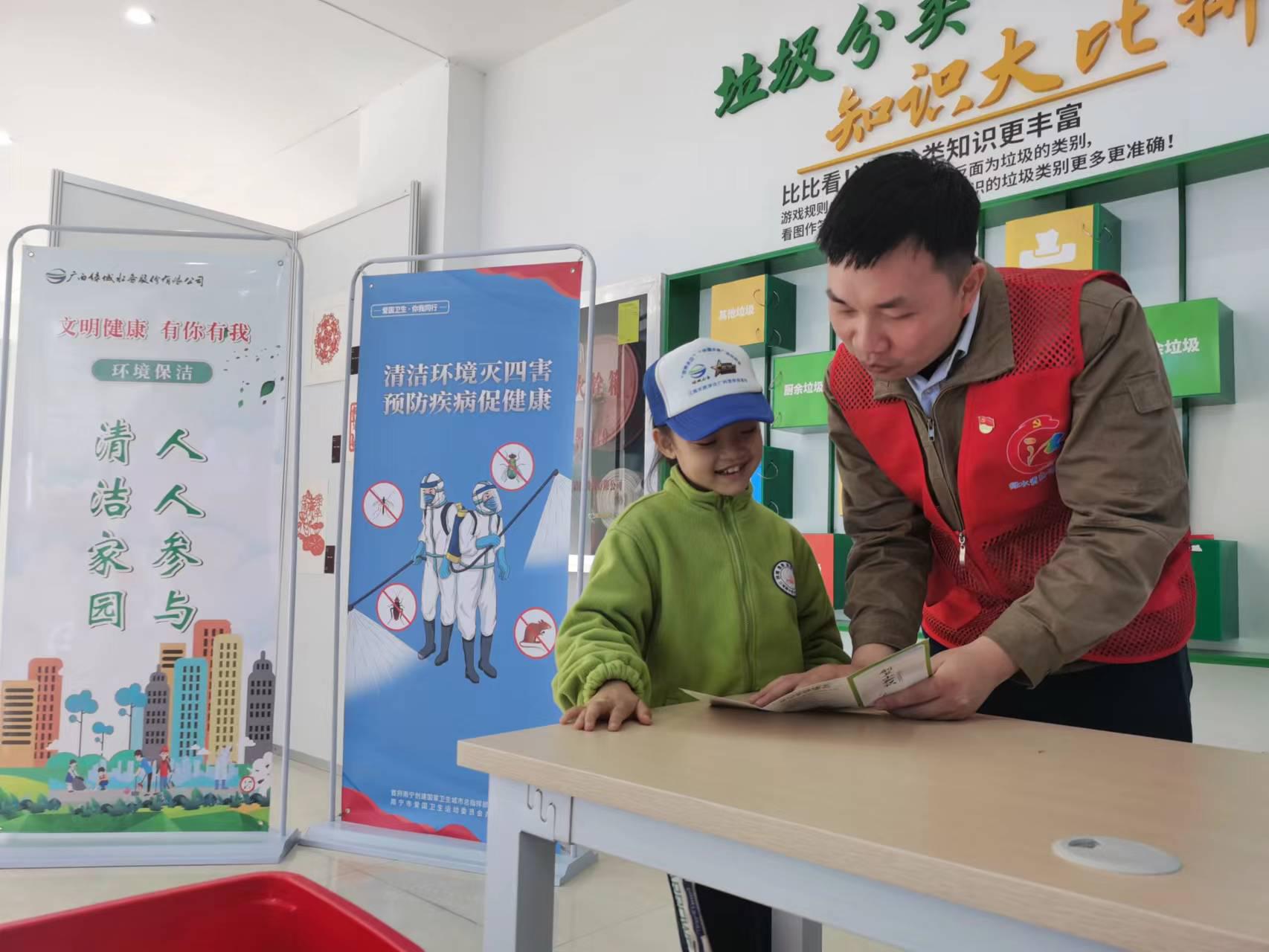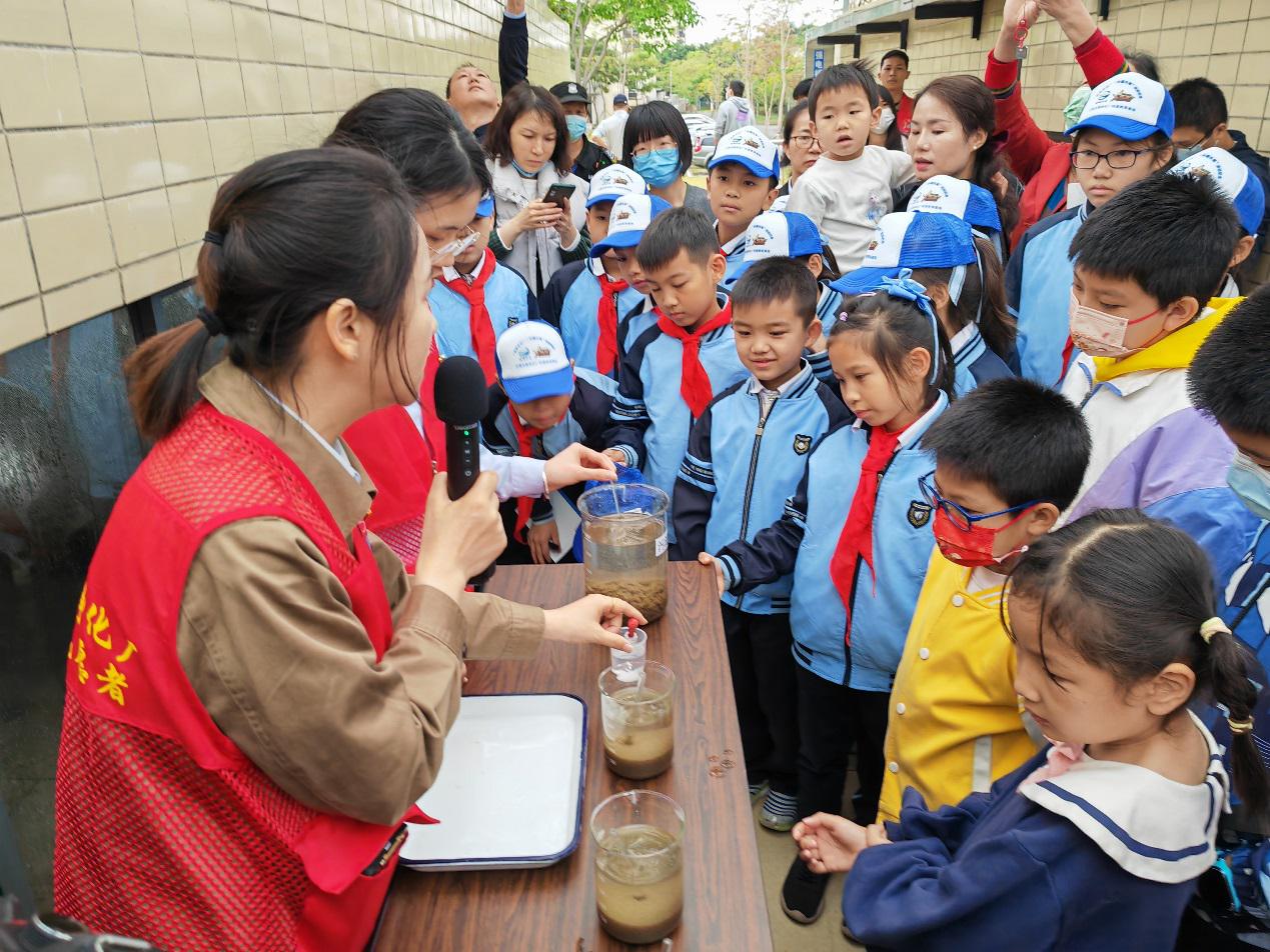 在水科普館,孩子們與講解員一起參與了水科學小實驗,通過親自動手操作凈水科學實驗,更直觀地感受到“干凈水”的由來。在垃圾分類宣傳陣地,孩子們利用陣地中的道具開展垃圾分類競賽游戲,在歡聲笑語中加深了對垃圾分類的認識。