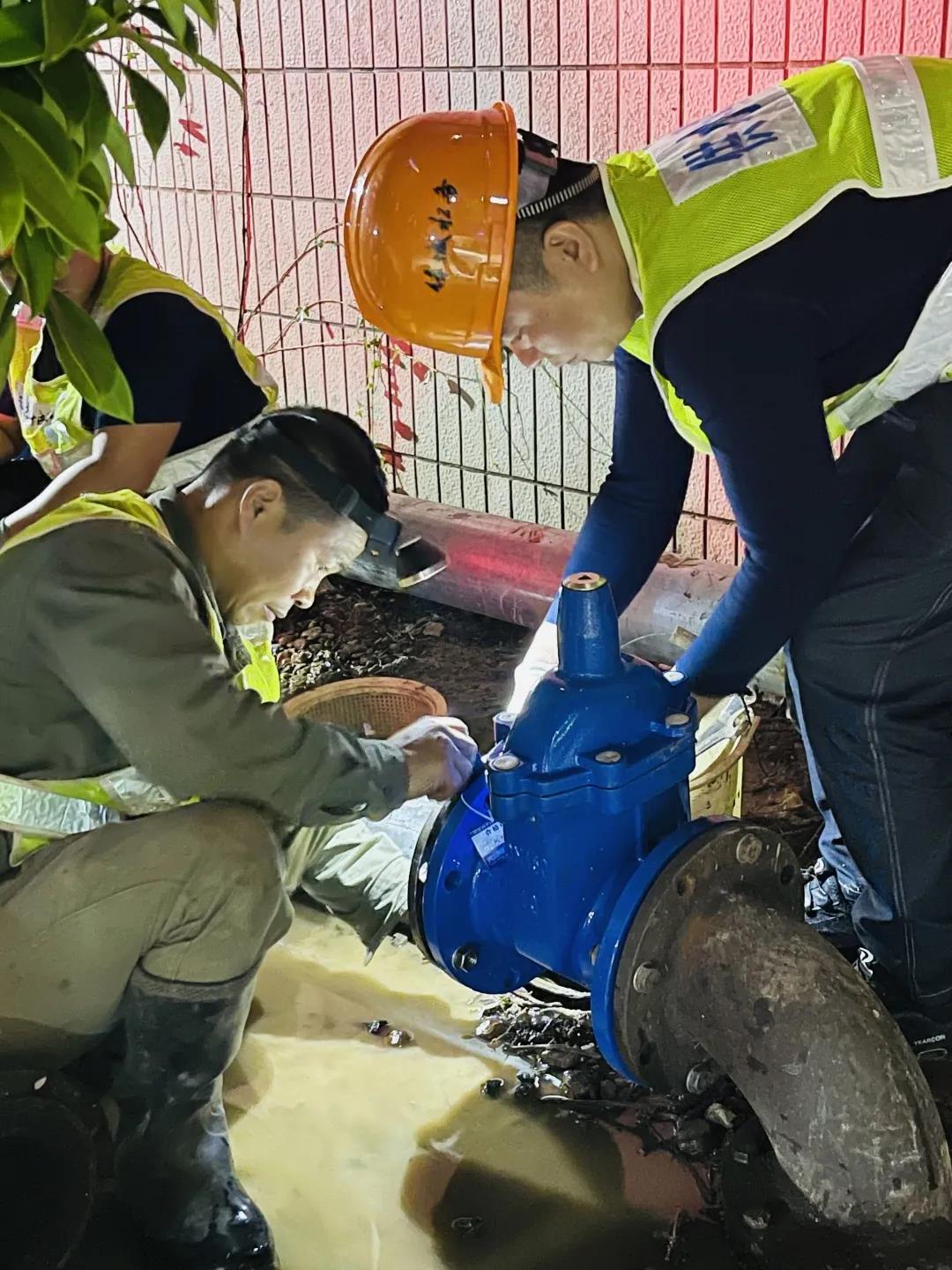 圖為管網管理處“水超人”黨員先鋒隊在對大會場所周邊供水管道開展巡查維護